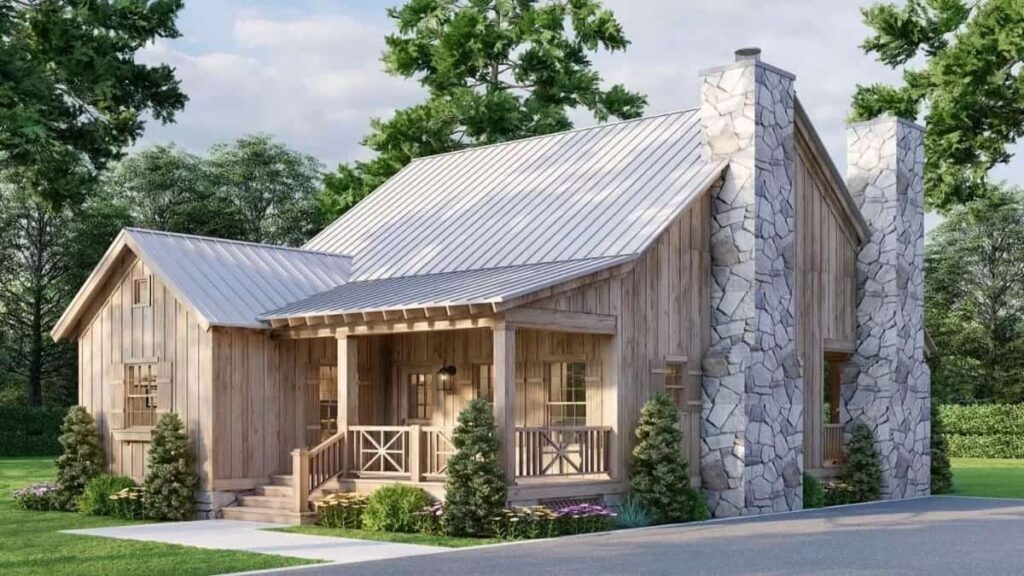 READ MORERustic 2-Bedroom Board and Batten Cottage with Front Porch and Open Living Space (Floor Plan)