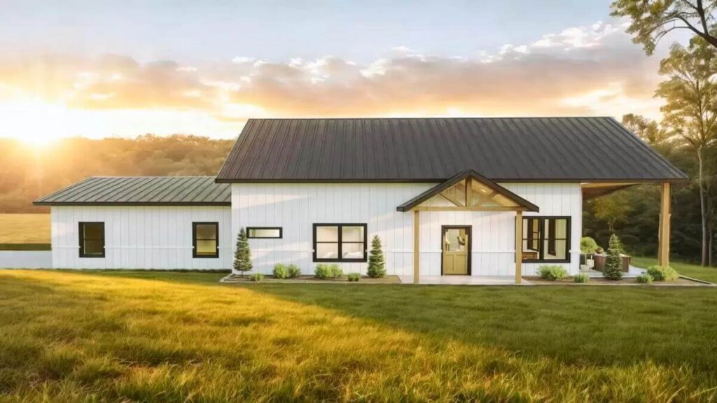 Specifications Details This 2-bedroom barndominium has a cozy country style. It features board and batten ...