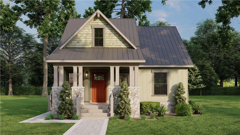 READ MORE2-Bedroom Cabin Style Single-Story Home with Open Living Space and Wraparound Porch (Floor Plan)