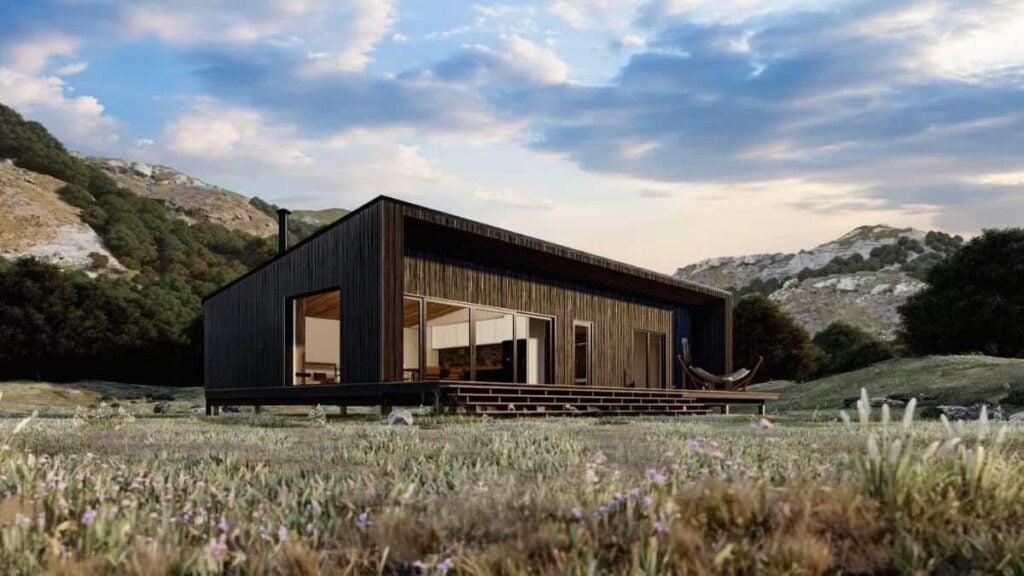 Specifications Details This 2-bedroom modern home has a rustic look with warm wood siding and ...