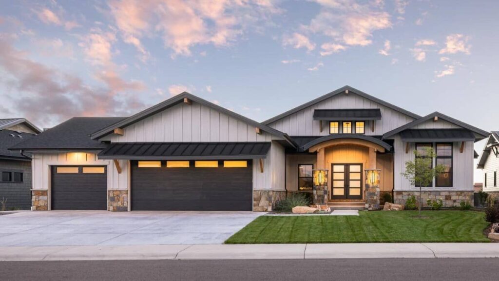 Specifications Details This one-story modern home combines rustic charm with a sleek design. It features ...