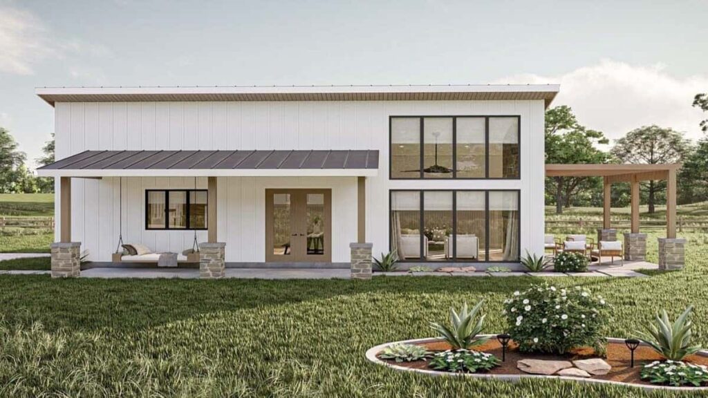 Specifications Details This 2-bedroom barndominium has a modern and stylish look with board-and-batten siding, a ...