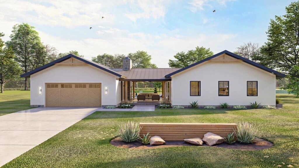 READ MORERustic Barndominium Style 2-Bedroom Single-Story Farmhouse with Open Living Space and Covered Patios (Floor Plan)