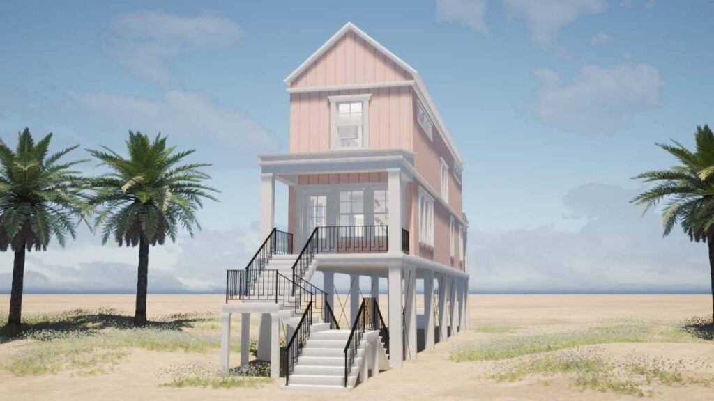 Specifications Details This 2-bedroom beach house has a narrow layout and sits on top of ...