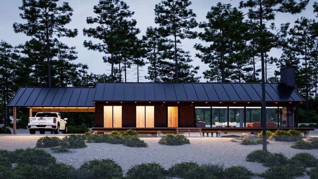 READ MOREMid-Century Modern Single-Story Cabin with 2 Bedrooms and Open-Concept Living (Floor Plan)