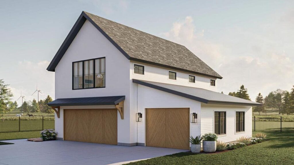 Two-Story 1-Bedroom Craftsman Style Carriage Home with Open Living Space and Double Garage (Floor Plan)