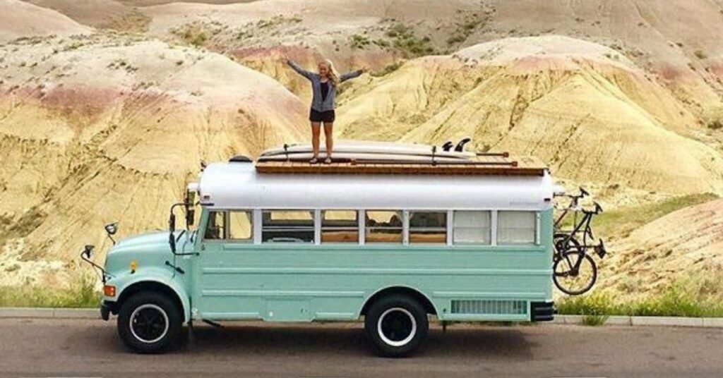 They named the bus Fern and painted it a beautiful lake blue, just like the lakes in Banff National Park in Alberta, Canada.