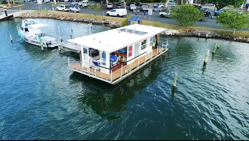 This little house is also a fully functioning boat. It moves at a good speed and is cozy for living on all the time. You can keep it at a swing mooring or a marina, and it has everything you need. Plus, it’s eco-friendly. It gets its power from solar panels on the roof, making the most of Australia’s sunny weather.