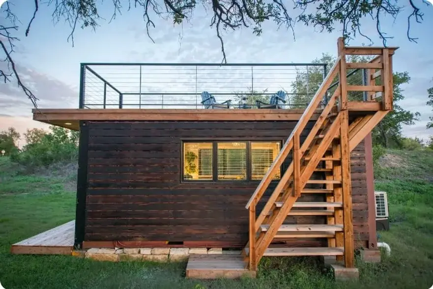 The rooftop deck is a wonderful spot to relax, grill, or watch the stars at night. It has clean, sleek cable railings that keep it safe without blocking the view. You can also turn on optional LED lights on the railing for a soft glow in the evening.