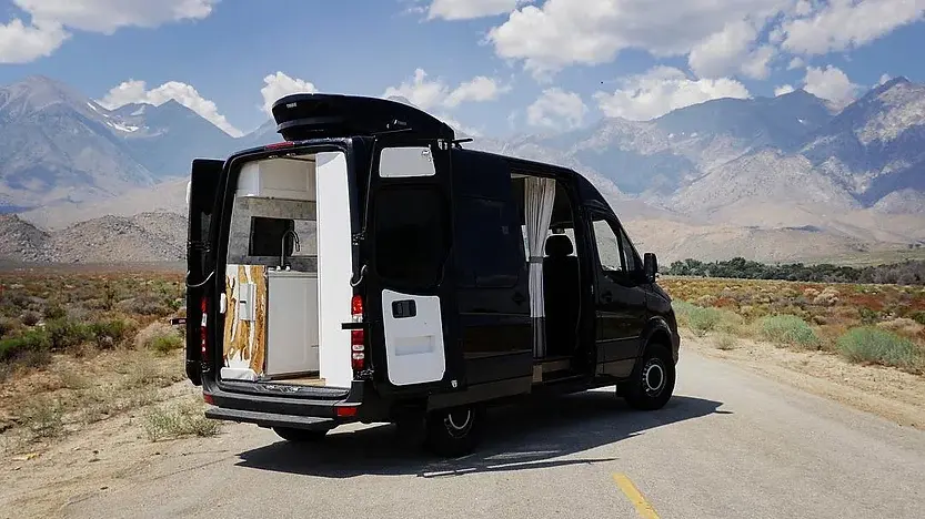 Meet Wild, my 2016 Mercedes Sprinter 144 wheelbase van. It’s a two-wheel drive, not four-wheel, even though it might look rugged because of my BF Goodrich all-terrain tires and black rhino rims.